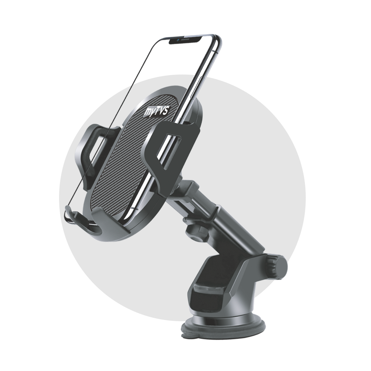 The myTVS MH-3 Mobile Holder for Car offers a secure and convenient way to mount your phone while driving. Featuring 360-degree rotation, an adjustable arm length, and silicon pad protection, it ensures stability and ease of use with every drive. Easy to install, this holder is the perfect companion for your car