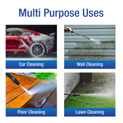 - Attachments Included: Spray gun, adjustable nozzle, 5-meter high-pressure hose, foam cannon, hose connector, water inlet quick container