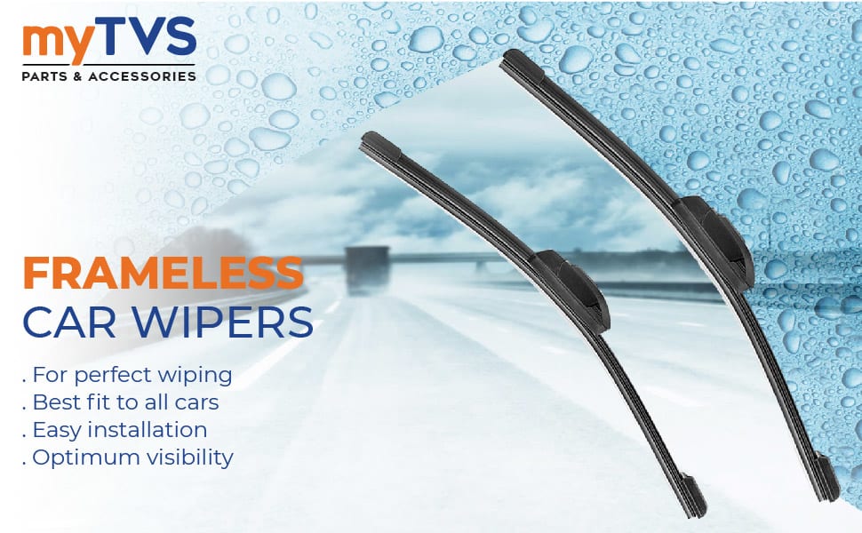 Frameless car wipers give a clear advantage over the traditional ones. myTVS frameless wipers are precisely designed to offer better flexibility, more stylish design, light-weight, high-pressure resistance, corrosion resistance, and tensile strength. Perfect fit for any car, easy to install, these wiper blades are meant to offer optimum visibility during even adverse rains, foggy, and winter conditions.